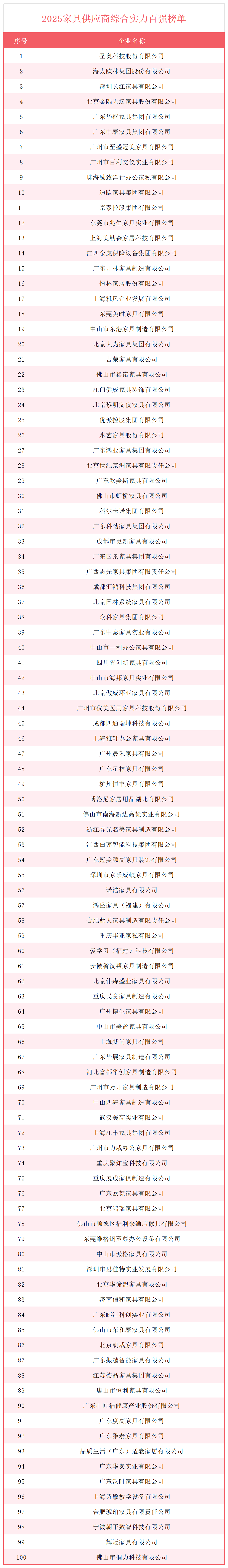 日前,正值《招标投标法》颁布施行25周年之际,为进一步规范家具招标采购秩序,树立诚信标杆典范,引导行业健康持续发展,中国采购与招标网、中国名企排行网组织开展了“2025(第15届)家具招标采购评价推介活动”。该活动历时2个多月,历经企业申报、资料提交、数据核对、综合评审等阶段,依据家具招标投标大数据及科学合理的招标采购综合评价法,最终产生“2025家具供应商综合实力百强”榜单。